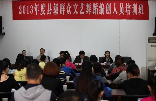 近日2013年度全国县级群众舞蹈编创人员培训班在全国基层文化队伍培训基地浙江艺术职业学院隆重开班。中央文化管理干部学院院长张旭,浙江省文化厅公共文化处处长戴言,浙江艺术职业学院党委副书记黄杭娟等出席开班仪式。开班仪式由继续教育学院院长谢青主持。来自上海、江苏、浙江、安徽、福建、江西、广东、海南八个省、市文化馆以及东海舰队文工团、成都军区空军戍天西南战士演出队、空军第十五军战神文工团共41名舞蹈编创人员参加此次培训