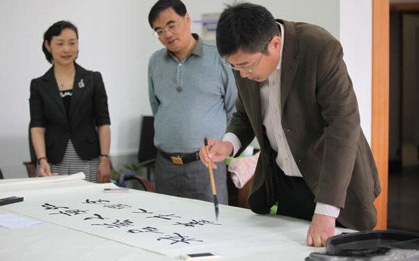 开班仪式后,张旭与戴言共同为浙江艺术职业学院培训基地题词——“江南文艺名校,全国人才基地