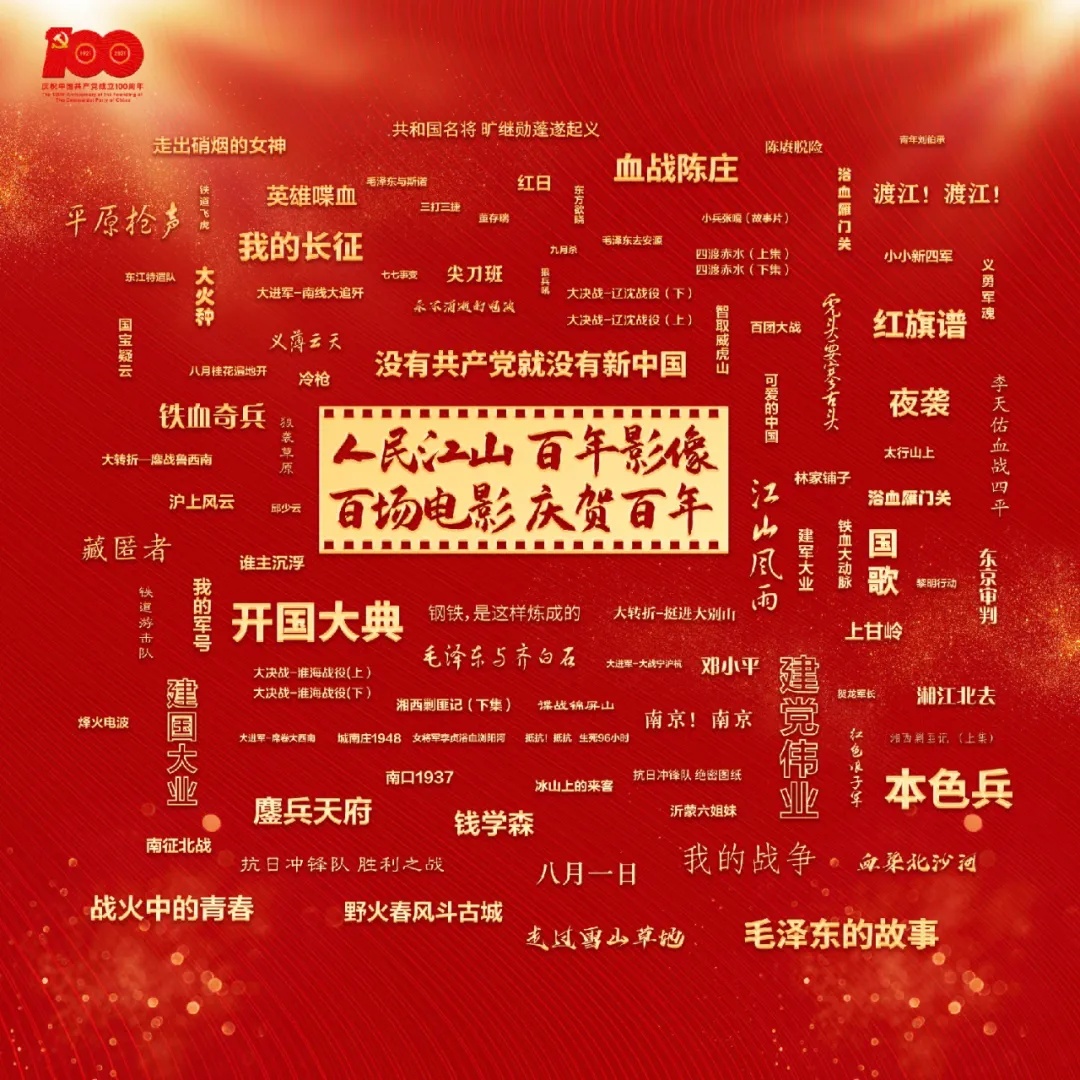 人民江山,百年影像,百场电影,庆贺百年。