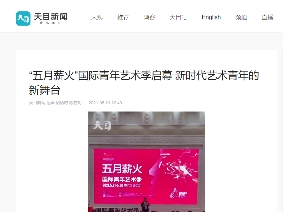 5月21日,由浙江省文联、中国美术学院、浙江传媒学院、浙江音乐学院、浙江艺术职业学院、杭州市拱墅区委区政府联合主办的“五月薪火”国际青年艺术季正式启幕。