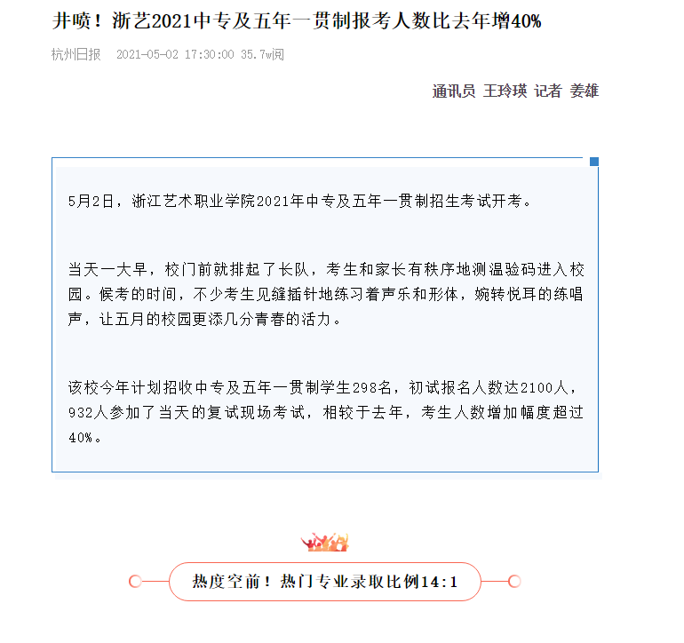 热度如此之高,与浙艺近年来亮眼的艺考成绩有着密切的关联。