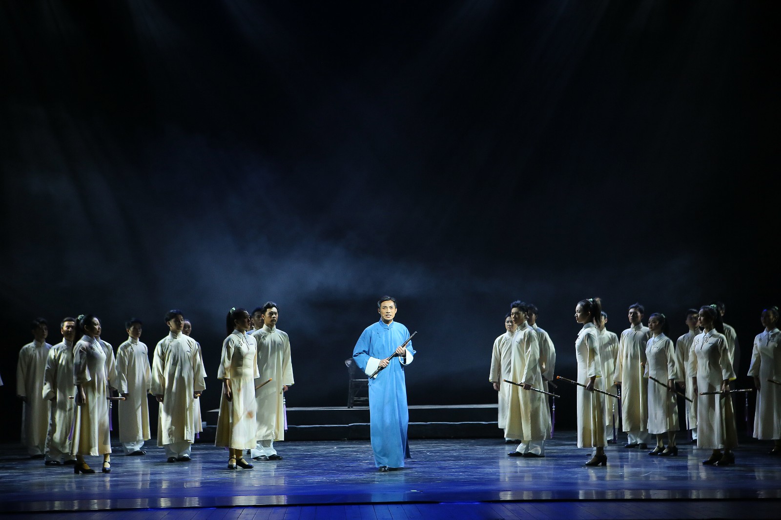 “这是一部标识文化自信,且承载民族音乐教育价值导向的作品。它以赵松庭先生不同凡俗的育教人格构筑的民族音乐传承创新思想为主线,再现其艺术人生经历和抉择,颂扬艺术家精神财富,弘扬社会核心价值。用超越人情冷暖的吟咏,凝练艺术与时代的情感记忆,生发出感悟时代精神血脉的澎湃激情。”导演陶铁斧说,演出以笛音为脉络,营造极具现代意味和浪漫主义色彩的音乐形象。在剧目呈现上追求写意美学意蕴,在简练空灵中刻画内涵灵秀、具有艺术人文智慧的诗情画意!为了打造剧目的现场效果,赵松庭嫡传弟子、浙江艺术职业学院音乐学院院长吴樟华携浙艺民乐竹笛学生现场演奏了《幽兰逢春》等曲目,笛韵薪火,代代相传。
