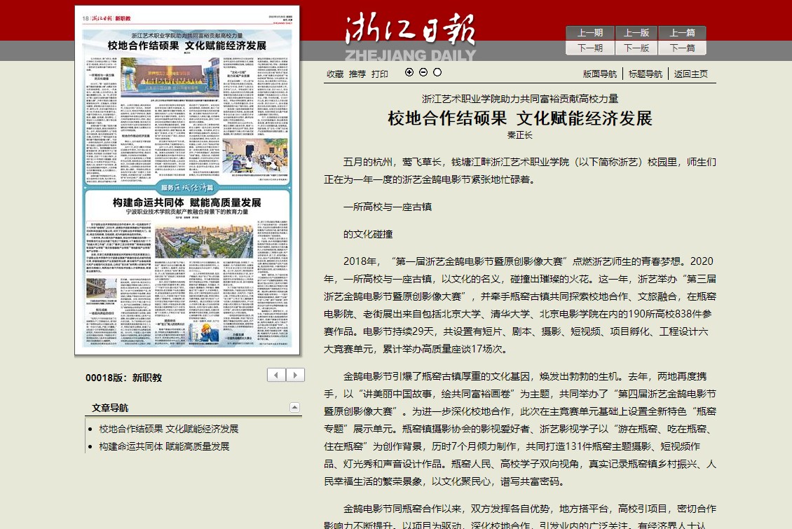 浙江日报:浙江艺术职业学院助力共同富裕贡献高校力量 校地合作结硕果 文化赋能经济发展