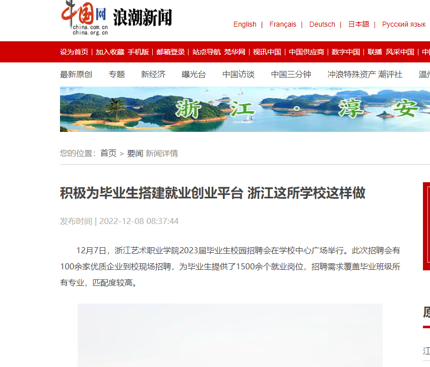 中国网浪潮新闻:积极为毕业生搭建就业创业平台 浙江这所学校这样做