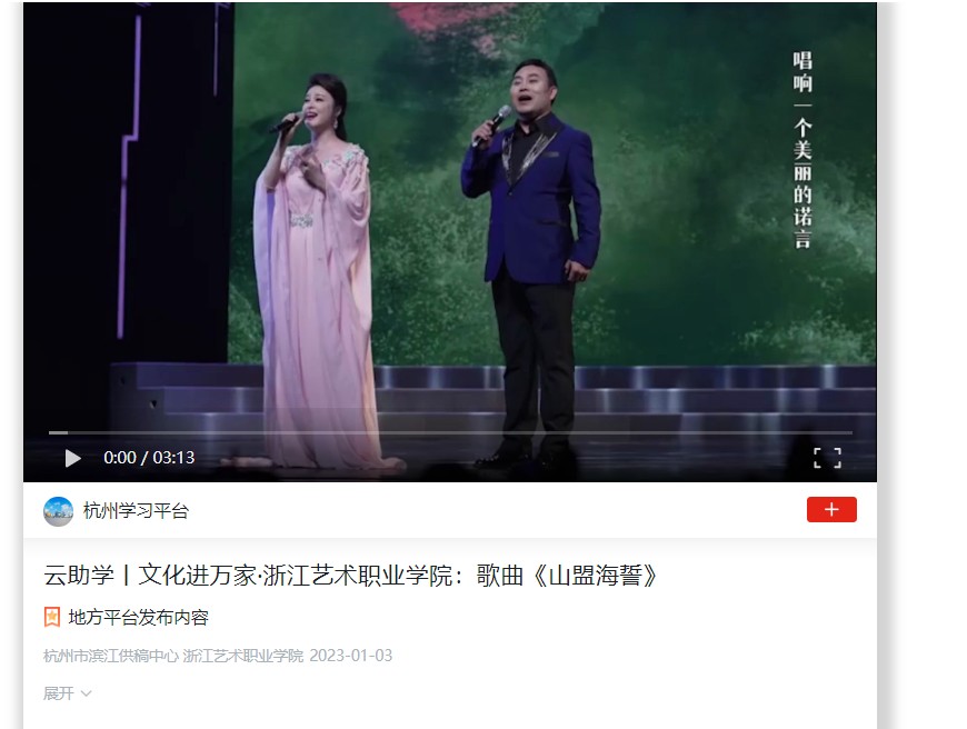 学习强国杭州平台:云助学丨文化进万家·浙江艺术职业学院:歌曲《山盟海誓》