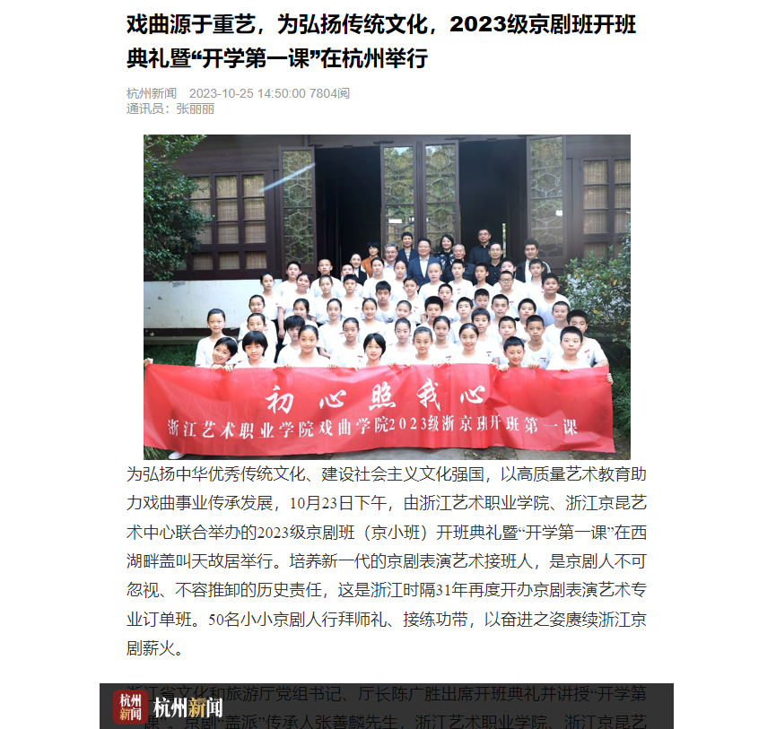 杭州新闻:戏曲源于重艺,为弘扬传统文化,2023级京剧班开班典礼暨“开学第一课”在杭州举行