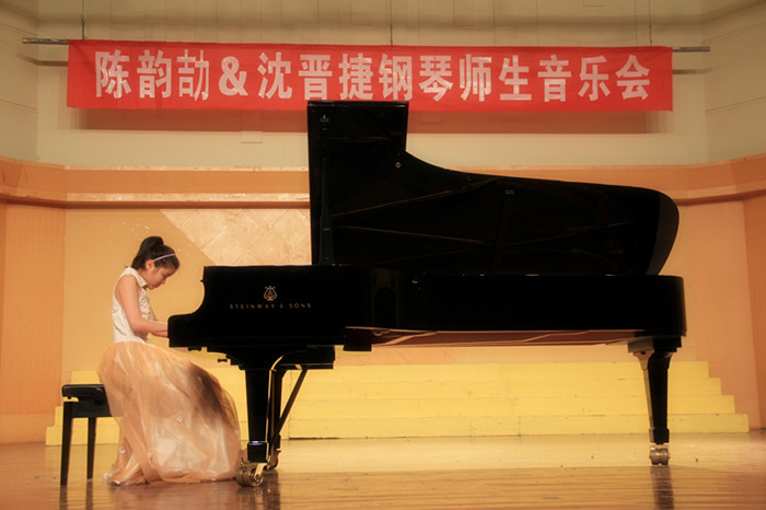 这次音乐会分上、下两场,演奏分别由附中10音乐班学生沈晋捷特邀嘉宾、中央音乐学院附中学生万小丫和中央音乐学院钢琴教师陈韵颉三人担任。整场音乐会没有炫目的灯光效应,没有奢美华丽的场景布置,一切都简单纯粹。重头到尾一架黑色大钢琴立于舞台中央,似乎喻意着这场音乐会的表演者为钢琴而活、而乐、而坚持。