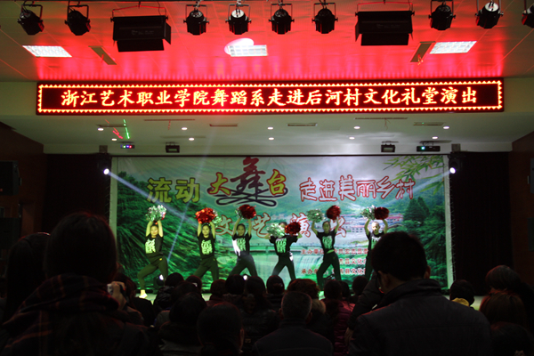 12月6日,浙江艺术职业学院舞蹈系“农村文化礼堂”小分队走进湖州安吉县后河村,举行“送欢乐进文化礼堂,长实干走社会基层”服务活动,为后河村村民献上了一场综合性演出。