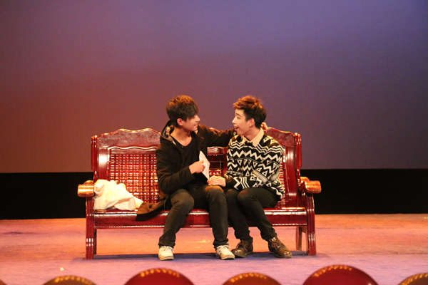 整场晚会贯穿小品、相声、歌曲、舞蹈,形式多样,热闹非凡。晚会在12广告班吴爽同学演唱的一曲《伤心的人听慢歌》中开始,即刻带动全场氛围。14服装设计班的杨赠琳、曹佳佳等人表演的《甄嬛传》重新颠覆了所有人的意想,别出心裁的服装和令人捧腹的角色反串引得观众爆笑连连。14舞美班周宇琼等人的表演的影子秀《风》再次带动全场氛围。13装饰班于奥林、俞会杰等人的诗朗诵《我的滑板鞋》《100块都不给我》,既诵出了磅礴气势,又咏出了幽默风趣。晚会还特邀越剧表演专业的两位同学深情演绎了一段《游园惊梦》,穿插的互动游戏环节也极尽幽默搞笑,吸引观众积极参与,台上台下互动频繁,其乐融融。