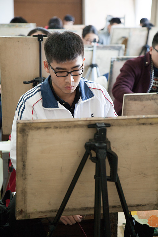 文物鉴定与修复专业的考场,考生们正在拿笔作画,色彩的独特运用,是他们对于作画的个人思考。