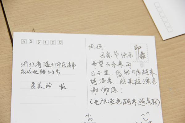 东冠团学为本次活动免费提供了大量特色明信片,倡议同学们在母亲节前夕,为自己的妈妈寄出一份来自子女的美好祝福,表达对父母多年养育的感激之情。同学们用心写下各自对母亲的节日祝福:“祝天下母亲天天开心,身体健康!”、“祝母亲永远年轻漂亮!”等等。更有一些同学则把自己平日里说不出口的知心话写在了明信片上。