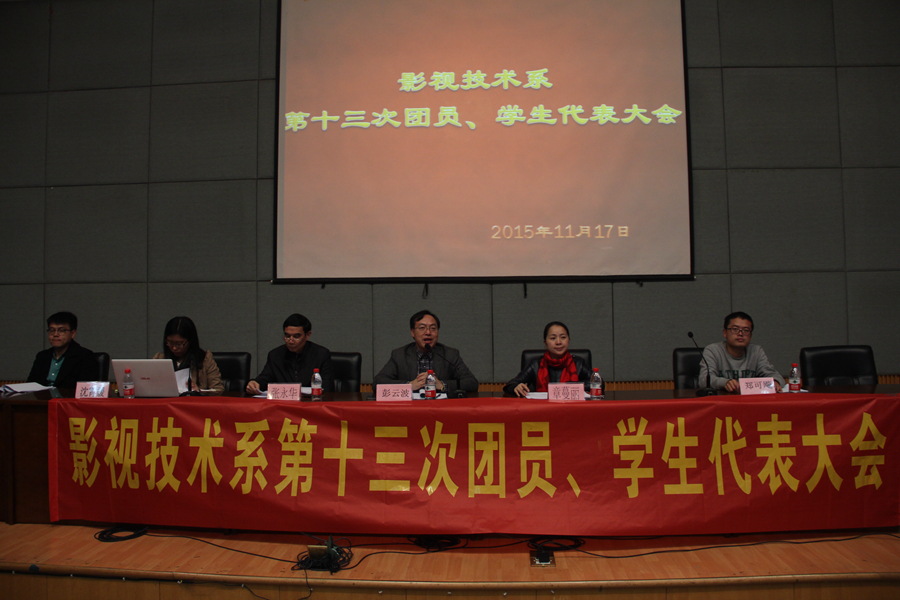 11月17日晚,影视技术系第十三次团总支、学生会双代会在图信中心举行。影视技术系党总支副书记彭云波,院团委书记、音乐系党总支副书记章蔓丽,各系团总支书记及影视技术系师生代表等出席会议。