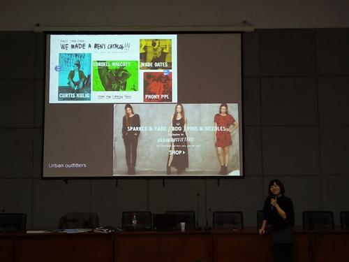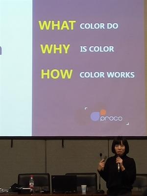 张昕婕以“What color do? Why iscolor? How color works?”三个问题作为讲座开头,带领大家进入色彩的神秘世界,揭开了这个领域的神秘面纱。她以幽默诙谐的语言向大家讲述了一个个关于色彩的传奇故事,告诉大家一个熟悉但却常常会被忽略的真理:灵感来源于生活的任意一件微不足道的小事,要学会“发现”。