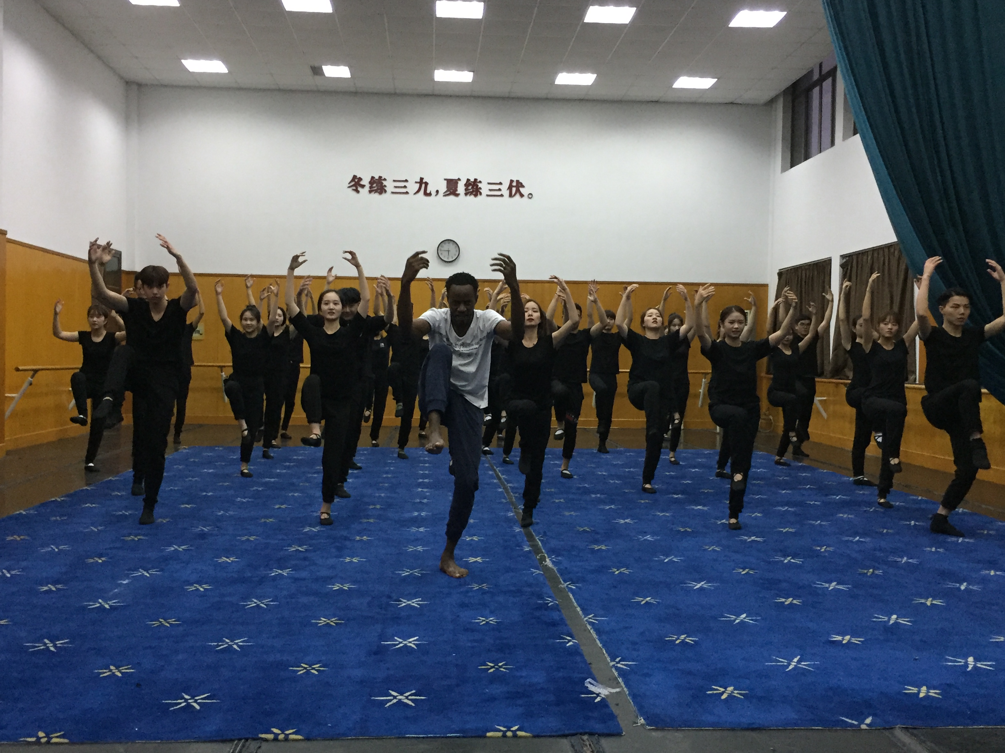 日月广场舞台演出地点在日月广场,由于第二天就是首演,于是在到达乌镇的当天下午,师生们便投入了紧张的排练。为了将自己最好的一面呈现给观众,大家保持了高昂的热情,使得联排一遍比一遍出色。演出前,所有演员就位,一起握手,共同加油。从走上台的那一刻起,同学们尽情享受着舞台,并以出色表现获得了剧目组的好评和观众的热烈掌声,同学们觉得,此前所有的辛苦和努力都是值得的。首演成功,令同学们倍感激动和喜悦。回到休息室后,首演庆功宴早已布置好。更让同学们振奋的是,赖声川导演也特地赶来,跟剧组成员一起合影、举杯,同贺首演成功。赖声川导演对首演成功表示祝贺,《李尔王》的导演窦辉向赖导介绍了剧组所有成员,对浙江艺术职业学院表演艺术专业加盟这次演出表示感谢,对同学们在排练中的敬业态度和在舞台上的出色表现表示赞赏。