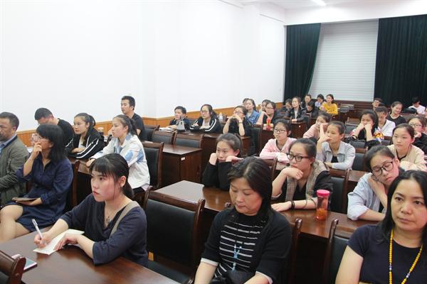 提问互动环节,科研处教授施王伟、周立波向朱恒夫提出了专业性很强的问题,他均予以细致独到的回答。由此,他还提到了有关中国戏曲文化传承与保护的问题。他说,在社会多元化发展的进程中,人们一昧崇洋媚外,传统戏曲的受关注度越来越低,如何保护传统戏曲文化及其发展已成为今后的一大题。借此,朱恒夫呼吁大家关注并传承保护中国戏曲文化。