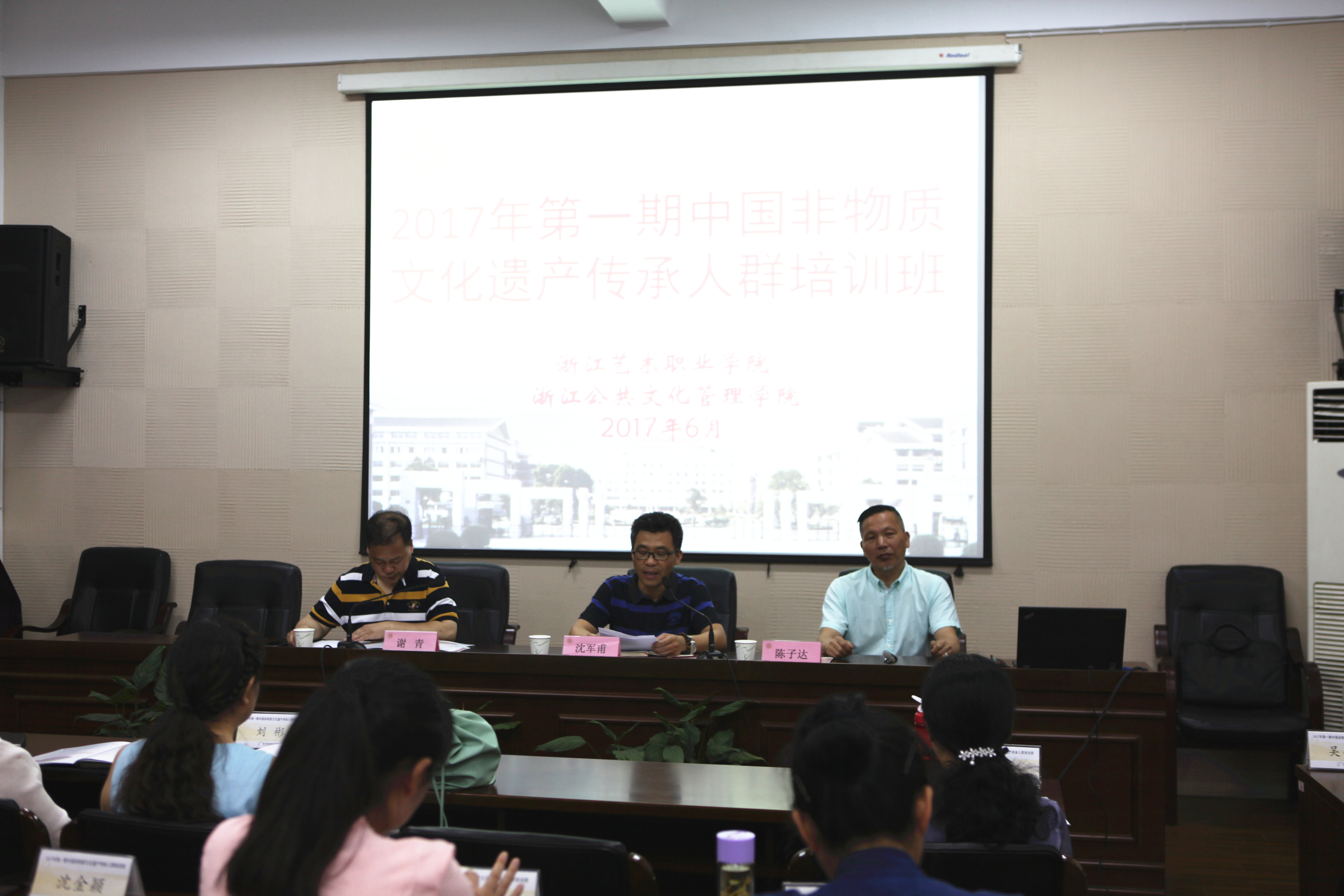 近日,为期一个月的2017年第一期中国非物质文化遗产传承人群培训班(书画装裱、古籍修复技艺方向)顺利结业。浙江艺术职业学院副院长沈军甫、文化管理系主任谢青、文化管理系首席专家陈子达、继续教育学院副院长厉剑虹等参加结业仪式,并观看了学员们的毕业展。