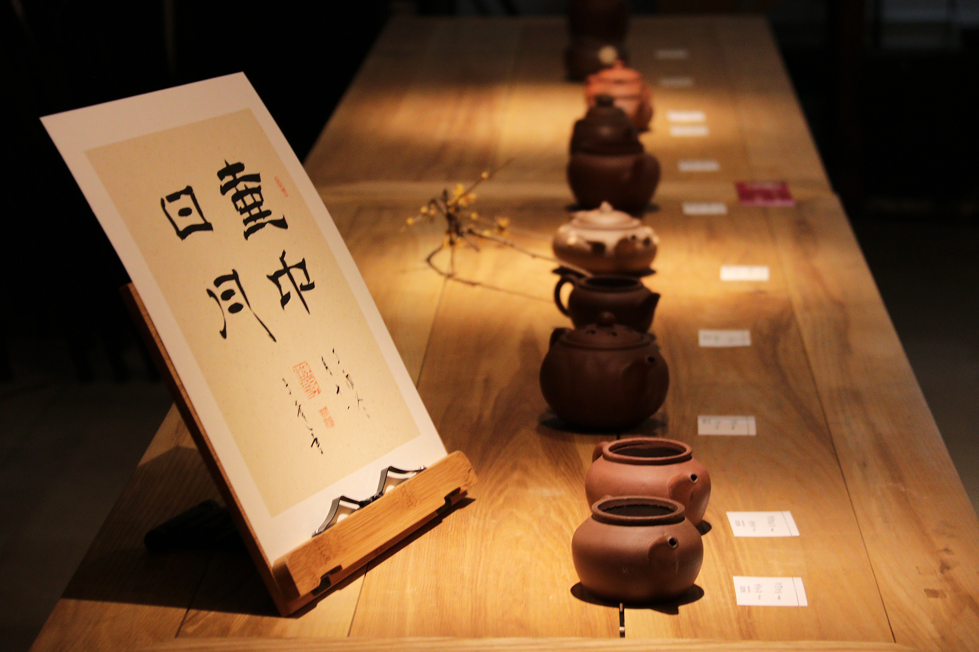8207室是牟赟同学的个人作品展——《壶中日月》明清紫砂壶特展。由陈子达老师、周科宇老师指导,展示了明清各类紫砂壶。牟赟还向大家表演了茶艺,紫砂壶在她娴熟的技艺、优雅的举止下,变得生动可爱,展览台上摆放了一些小茶点,看起来非常美味,下雨天,茶与茶点更配哦!