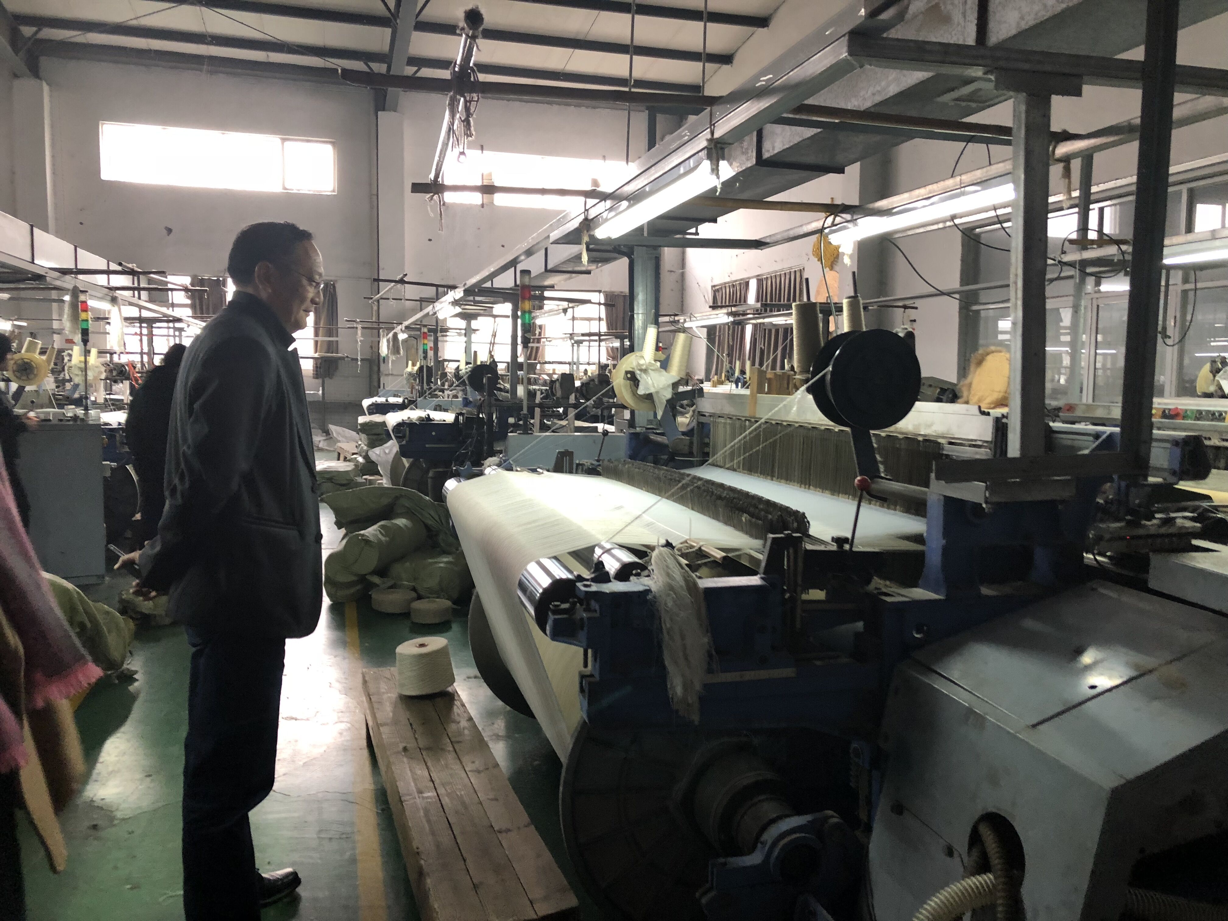 老师们参观了公司印花部、制造部等多个生产部门,观察了热转印数码印花的完整流程,包括数码打印和热转印过程,在交流中深入了解到数码印花从材料到工艺的全面环保性及在使用过程中的温度要求。随后又参观了厂区内多台高速箭杠机、电子龙头提花机及进口圆机等先进设备,各教研室主任分别与公司负责人交流专业领域相关问题,并积极推荐优秀毕业生就业。