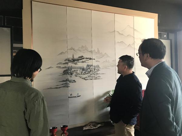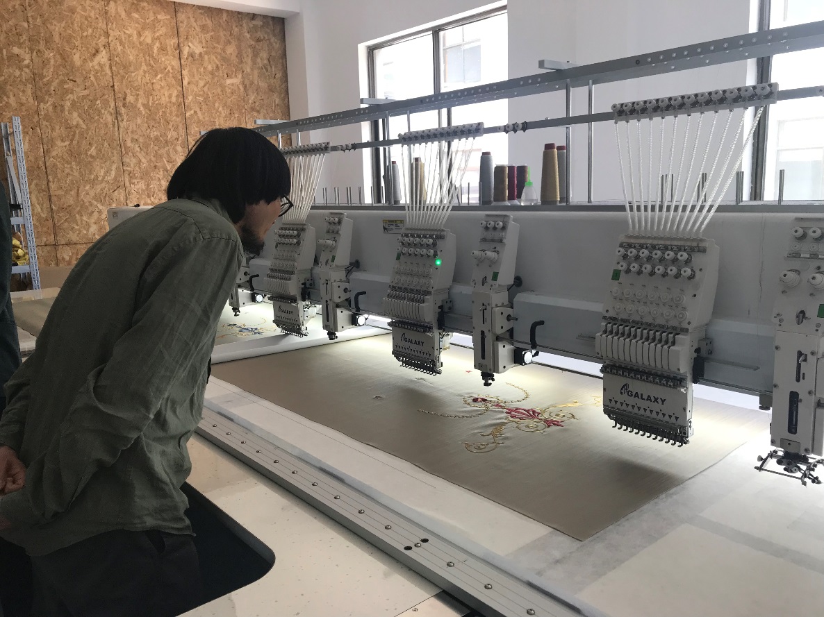 公司总经理楼永坤带领老师们参观了公司设计部、生产部的绣花车间、手绘车间等多个部门,观察刺绣机进行皮革刺绣的过程。随后,又带领大家参观了馆内各类艺术软包产品,了解制作过程,并就校企合作事宜进行了详洽谈。双方在学生校外实践、毕业实习等方面达成了初步共识。