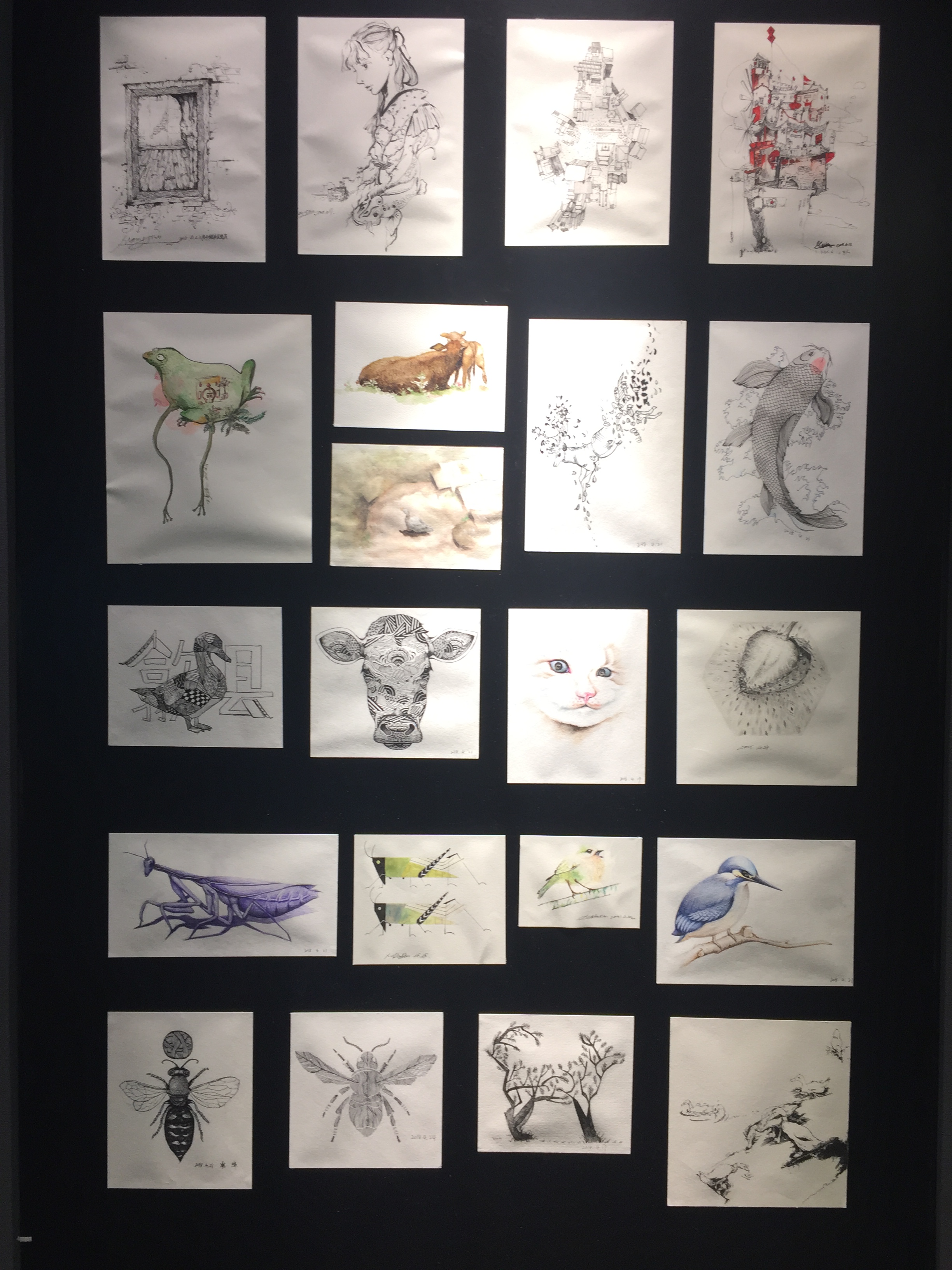 写生之旅,同学们每天早出晚归蹲点画画,见识过艳阳高照下的白墙黑瓦,也瞧见过烟雨朦胧下的小桥流水。他们将阳光晕染在画纸上,用烟雨勾勒风情万种,一笔一画满含努力,欲语还休让人沉迷。端午假期,师生们放弃了休假时间,对作品进行装裱布展。