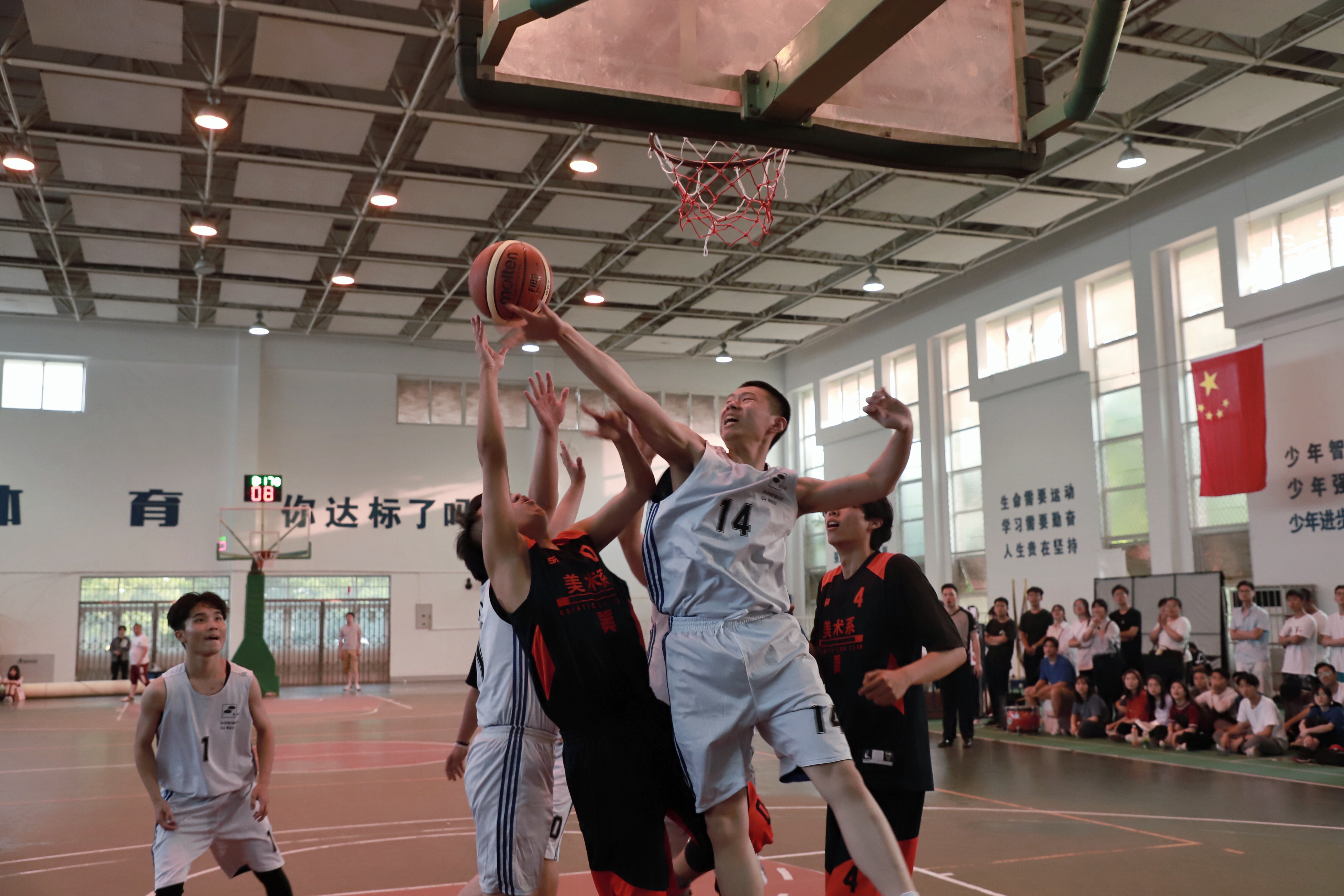 激动人心的浙江艺术职业学院第十三届男子篮球比赛暨第九届啦啦操比赛开始了。当天下午的风雨球场热闹非凡,许多同学都去现场为各系参加啦啦操比赛的运动员们加油喝彩。