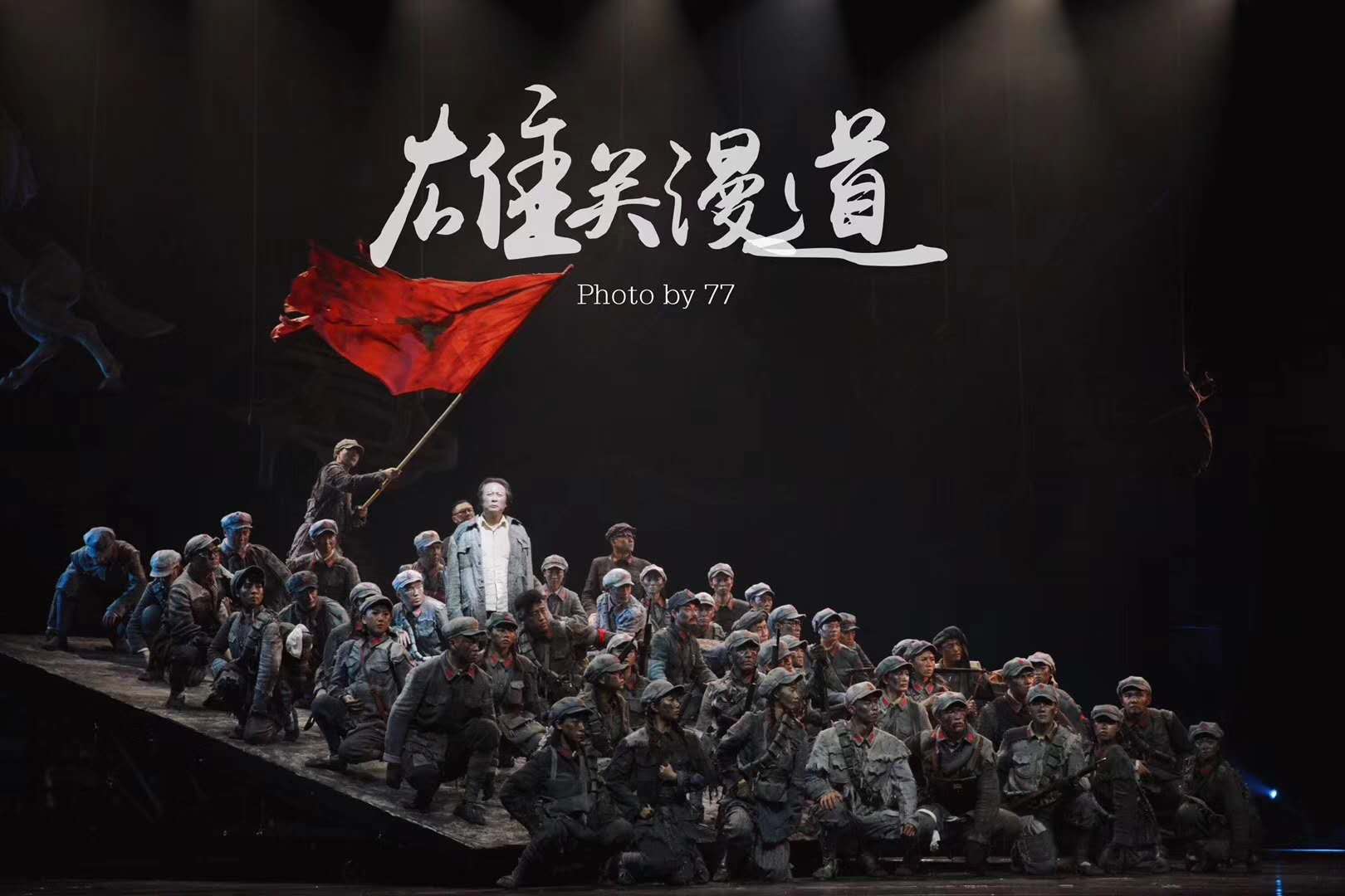 很爱这个集体,很喜欢和大家一起工作,一起出差,一起打打闹闹,一起把最棒的艺术,最真实的中国精神传向各地。每当《雄关漫道》谢幕时,观众们热烈的掌声,总让我觉得特别感动。他们尊重艺术,尊重演员,尊重红军。就因为有观众,所以我们也会一直演下去,演到底。雄关漫道真如铁,而今迈步从头越!