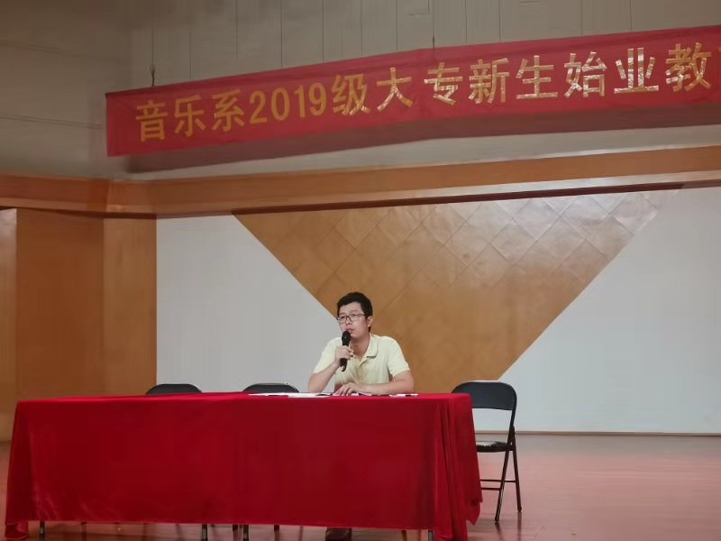 9月8日下午,首场始业教育会议上,系党总支书记、副主任高澄明作了讲话,热情欢迎2019级新生加入音乐系大家庭,他对新同学的专业发展、职业规划、生活学习等一一作了叮嘱。他表示,希望全体新同学不负所愿、努力进取、争创新的佳绩。系副主任潘骅就教学实践方面向新同学提供建议,系党总支专职副书记谢志勇就学生管理要求做了说明。