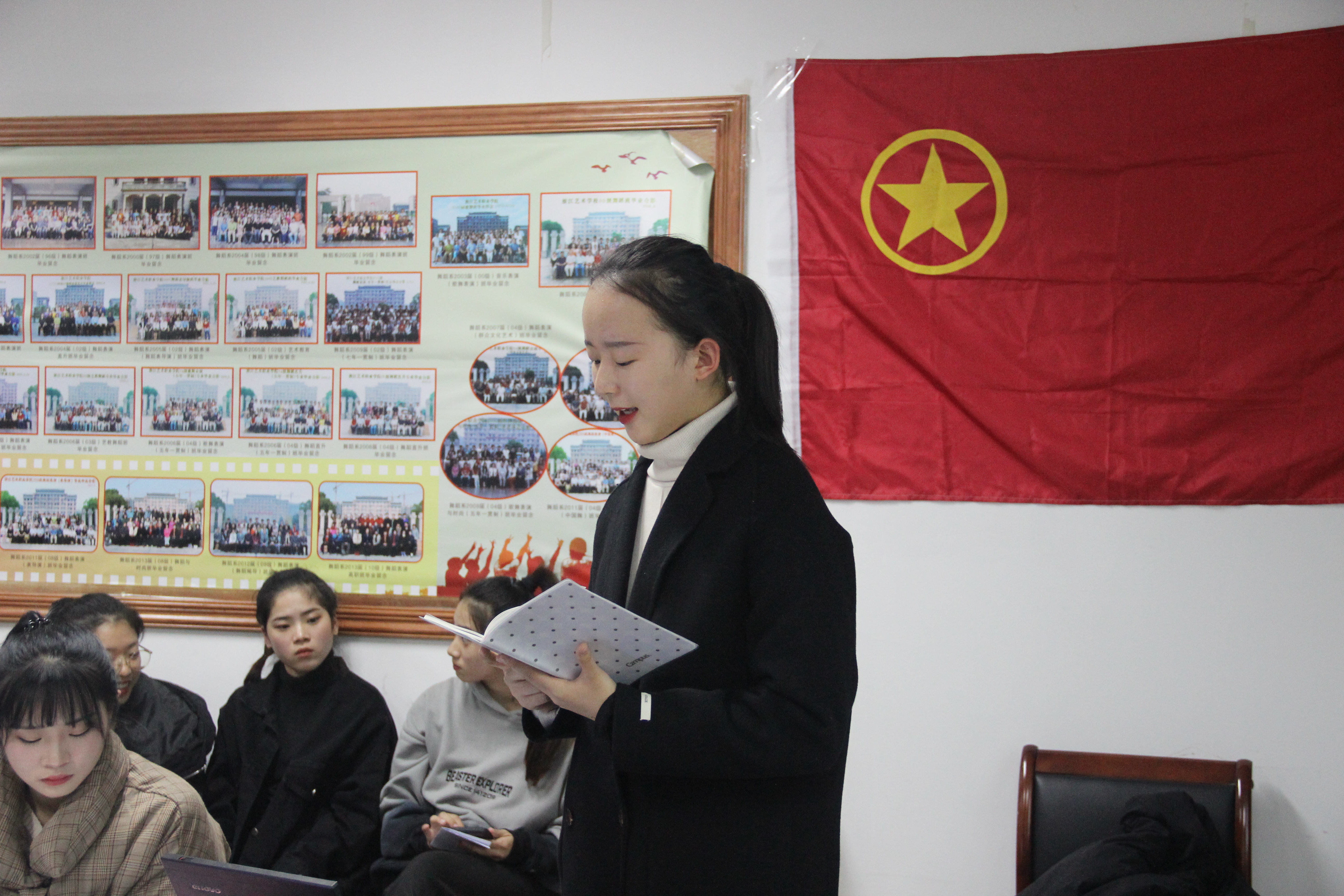 12月12日,舞蹈系第十八次团员、学生代表大会在4409会议室热烈举行。校团委书记郑吟,舞蹈系主任张星、党总支专职副书记马笑迎等参加大会。