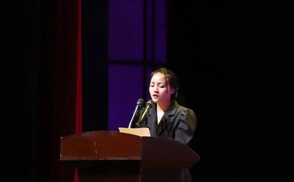 优秀毕业生代表胡淑琴发言,她讲述了三年间的奋斗与拼搏和收获的点点滴滴,回忆了在浙艺的学习生活、点滴进步和不断成长。