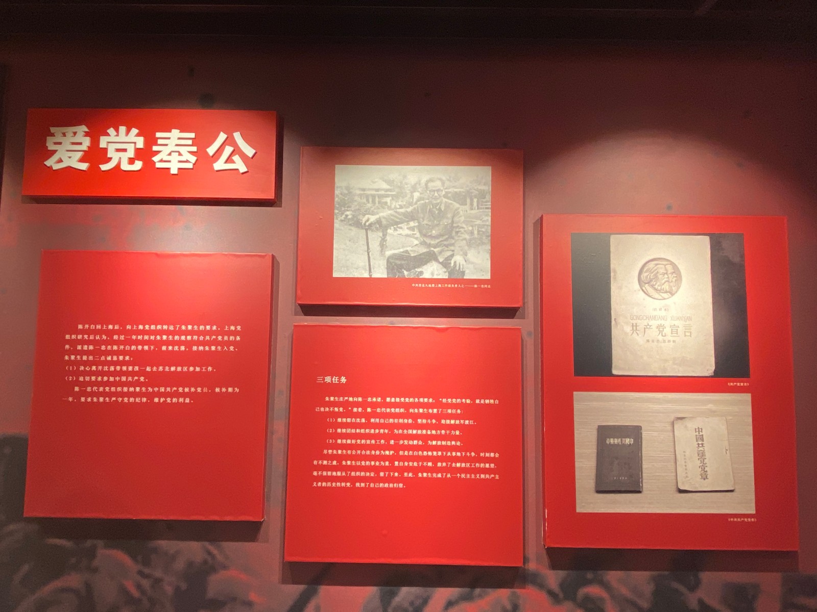 “为人不忘自重、做事不忘公平、掌权不忘廉政、从政不忘百姓”,在革命烈士朱聚生纪念馆的墙壁上写着他爱党奉公的信念。革命烈士朱聚生出生于沈荡,在学生时代他就开始从事革命工作。1949年5月7日深夜,在黎明前的最后一刻,倒在敌人的枪口下,遇害时年仅25岁。虽然时光已流逝了半个多世纪,但我们今天听着朱聚生的故事,依然是那样亲切感人,栩栩如生。他从国难思救、舍业为民、提笔创报、是庶为党、爱党奉公、誓死入党、不忘使命到慷慨就义的过程,让大家再次走入当年的岁月,感受到革命先烈胸怀天下、坚贞不屈的感人事迹,通过共同追忆这段峥嵘岁月,接受革命精神洗礼,坚定社会主义前进方向。
