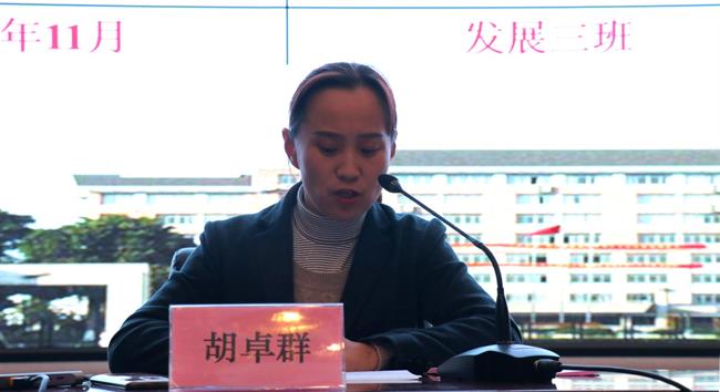 胡卓群致开幕词,她代表党校教研部对音乐系党总支分党校的工作给予了肯定,对100名新入党积极分子和即将参加新一期发展对象培训班的21名学员表示祝贺,对全体学生党员和入党积极分子表达了期待。她表示,希望大家要提升政治自觉,端正入党动机;提升文化自觉,保有文化自信;提升行动自觉,起好模范作用,积极争取早日加入中国共产党。