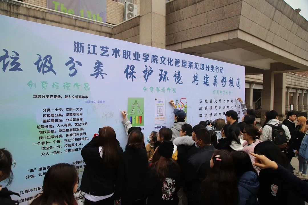 12月9日,文化管理系“墨香文管 遇见彼此”第四届公寓文化节闭幕式暨垃圾分类行动启动仪式在教学楼八号楼前举行。学院党委委员、副院长沈军甫,文化管理系党总支书记、副主任金银琴参加此次活动。