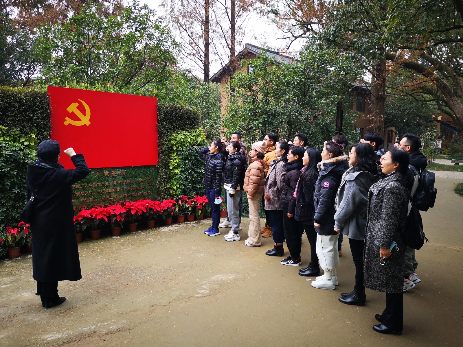 在公园里的“党建小院”,系党总支书记曹亮红带领大家重温入党誓词,勉励大家不忘入党初心,牢记党员使命。大家集中学了《党的十九届五中全会》精神。党员教师们表示,此次党日活动深入实地感受中华文明的厚重,在特别的场地重温入党誓词、集中学习全会精神,收到了意想不到的效果。