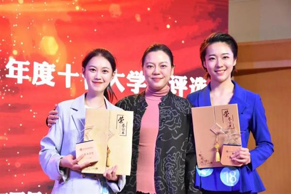 现场展示阶段,戏曲学院2016级越剧班陆祎杨和2017级越剧班黄霜霜同学以《赓续传承——我是浙艺戏曲追梦人》和《梨园筑梦 艺心向党》为题,进行了现场演讲和双人组合长水袖技能展示,最终以优异表现在众多选手中脱颖而出,荣获本届浙江艺术职业学院“十佳大学生”称号。