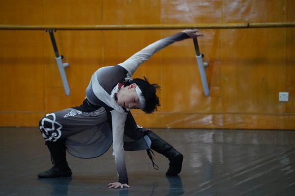 附中高中组包括16级至17级小舞蹈班的29位选手,作为小舞蹈班的学长学姐们,他们在比赛时的表现则更显从容老练。《孔乙己》是中国古典舞中非常考验舞者基本功与表现力的作品,但这个舞蹈对于16级的金成柯来说,却得心应手,他用夸张的肢体动作、表情,和着时而欢乐时而舒缓的节奏,将孔乙己这一又穷又懒却十分好面子的可怜书生形象演绎得淋漓尽致。16级胡须邦的维族舞蹈《可爱的一朵玫瑰花》伴随着一声响亮的哨声开始,手捧维族的指弹乐器都塔尔一边弹奏一边舞蹈,这个“维族男孩”的出现让现场的氛围一下子喜庆了起来。17级狄桐同的藏族舞蹈《转山》将藏区人民的朝圣生活以舞蹈的形式展现,用脚步和身躯丈量着自我心灵的净土。