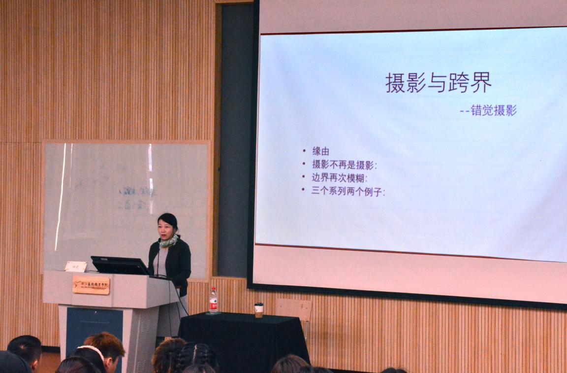 储楚从摄影的客观和非客观性的角度开始讲解,围绕摄影的多种属性特征进行了分析和阐述,结合当代摄影艺术作品从心理学等多方面与在场师生进行了交流与讨论。