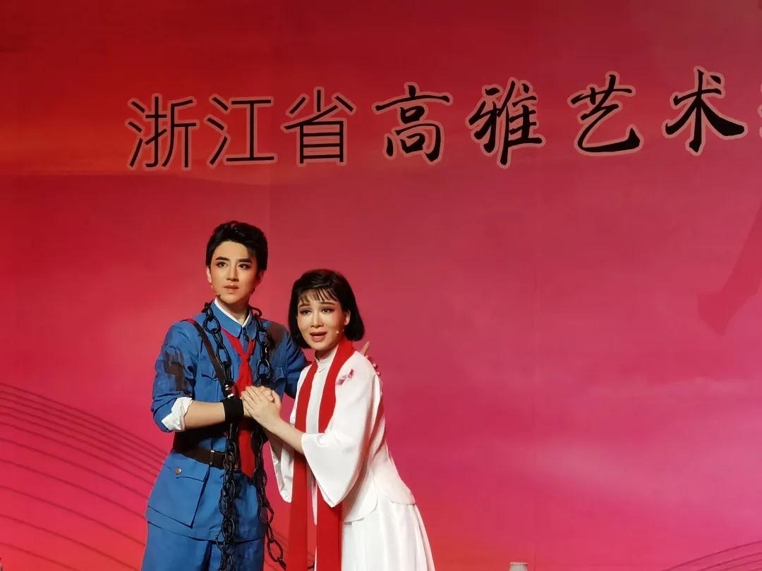 随后,深情婉转的越剧声腔、飘逸优美的舞姿身段吸引台下观众目不转睛、凝神关注。《金沙江畔》《杨开慧·记得当年清水塘 》《红色浪漫·我有一个梦想 》《江姐》《红松赞·风雪征途》《刑场上的婚礼》…… 一出出经典的折子戏次第登场,赢得台下掌声阵阵。陆祎杨演绎的“江姐”,柔美婉约中不失慷慨激扬,充分体现了革命人意志如钢;蒋晨曦饰演的“杨开慧”坚强勇敢,她爱自己的儿子,更爱共产党,甘愿为党、为人民牺牲奉献自己的生命。