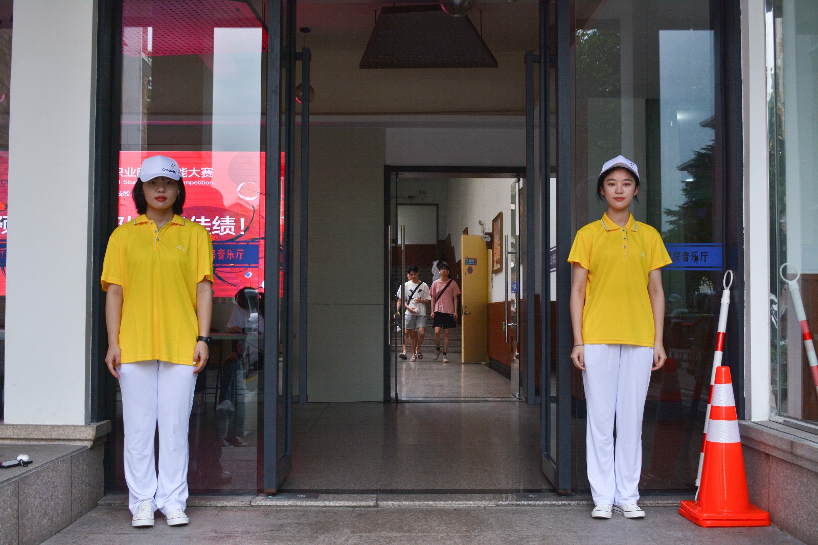 最新鲜的志愿者同学亮相,这次他们统一穿鲜嫩的鹅黄色,头戴白色鸭舌帽,以表这次浙艺对来自全国各地参赛者的欢迎和热情。赛项各工作组对现场灯光、大屏、布置、乐器等进行赛前最后的检查调整,一再调试话筒以保最佳的比赛直播效果。根据每个参赛队提前告知的需求,尽可能定制选手们所需要的比赛环境。每位在场的工作人员都在紧锣密鼓地进行最后的准备。