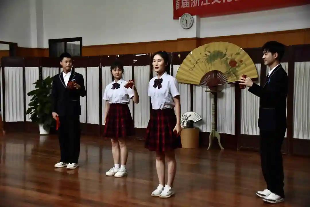 考试汇报中,同学们首先展示了快板的单点、双点、大板、开场板等基础功,第二环节展现了不同表现形式的快板节目。如快板《疫情阻击战》《夸夸好人全二平》《中华文化五千年》《天安门看升旗》《老师赞》音乐快板《别样风采看浙江》、音舞快板《祖国颂》。以此表达了对党和祖国的热爱,向建党百年献礼。通过本学期的学习,同学们更加喜欢曲艺表演这门课,综合表现能力得到了较大提升。