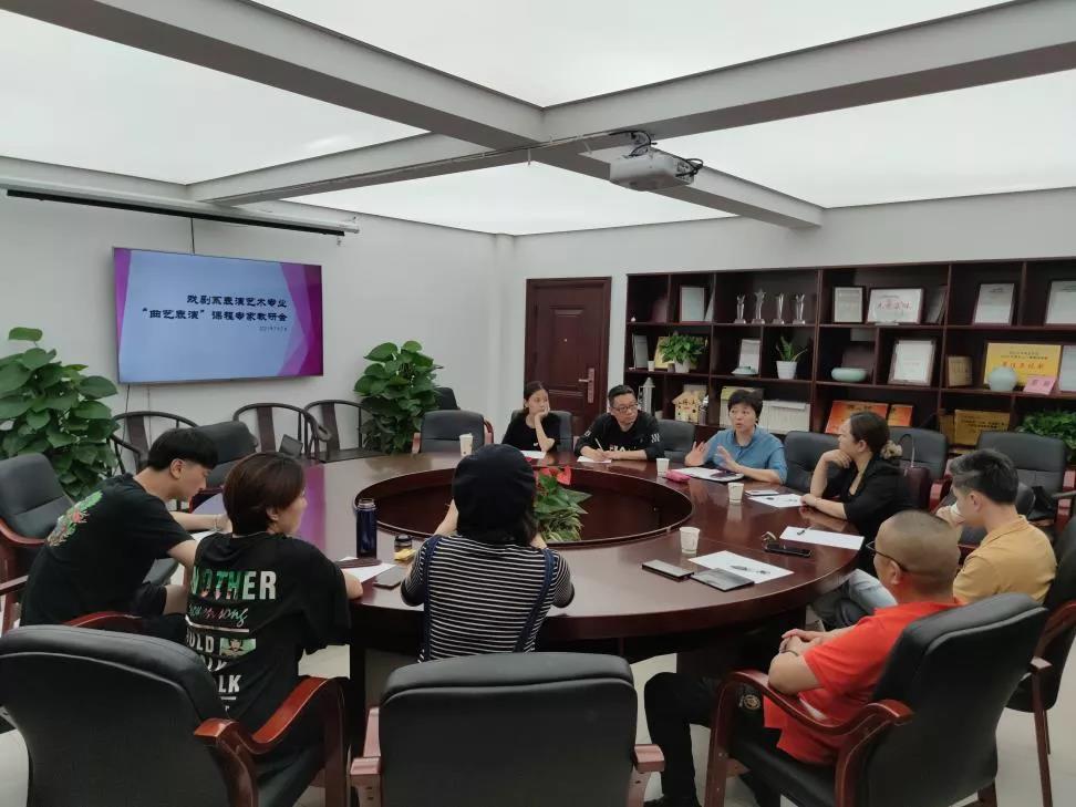 考试汇报结束后,教研室组织了三位专家及教学团队在戏剧系会议室召开曲艺表演课程专题教研会。与会专家对戏剧系表演艺术专业曲艺教学方向、课程设置阶段、使用教材、教学周期的等问题与教学团队进行了积极的探讨和交流,大家各抒己见,提出了很多科学合理化的建议。沈莹表示,一定要注重打好基础,要培养学生的学习曲艺的兴趣,在教学中要挖掘、彰显学生个性,才能培养有特色的艺术人才。唐爱超表示,曲艺艺术只有跟随时代的步伐,与时俱进的培养青少年曲艺人才,才能更好的传承弘扬下去,曲艺表演课程要与现在的课程融合同行,以后省曲艺家协会也会给学生提供实践平台,在实践中得到成长锻炼。倪明提出,必须加强多层面、复合型人才的培养与研究,一是科学延续,二是重点培养,三是创新立品。戏剧系副主任、表演艺术专业带头人荆芳教授对于各位专家提出的课程考试精准点评和人才培养“金点子”般的建议表示感谢。她认为,实现人才培养目标需要我们不断的去完善人才培养方案,在课程设置中要科学合理考虑课程之间的相互关系,如何培养新时代一专多能复合型综艺表演人才,必须做好整体设计和研究。本学期曲艺表演这门课程纳入到表演艺术专业的教学中,学生综合能力得到了明显的提升,开设这门课程有助于青年教师的培养和表演艺术专业的建设,曲艺表演这门课程后续的发展,还需要更多的探索与实践。