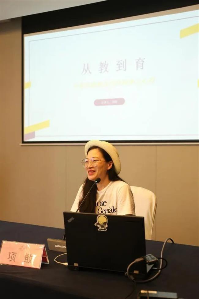 会议安排美术系服装与服饰设计专业教师、省级专业带头人项敢作《从教到育》为主题的课程思政教学建设项目申报经验分享。她从个人生活体悟谈到教师教学育人,指出思政教育需要从小处入手,要将课程思政融入到与学生相处的每一个细节中,从而实现从教到育的升华。