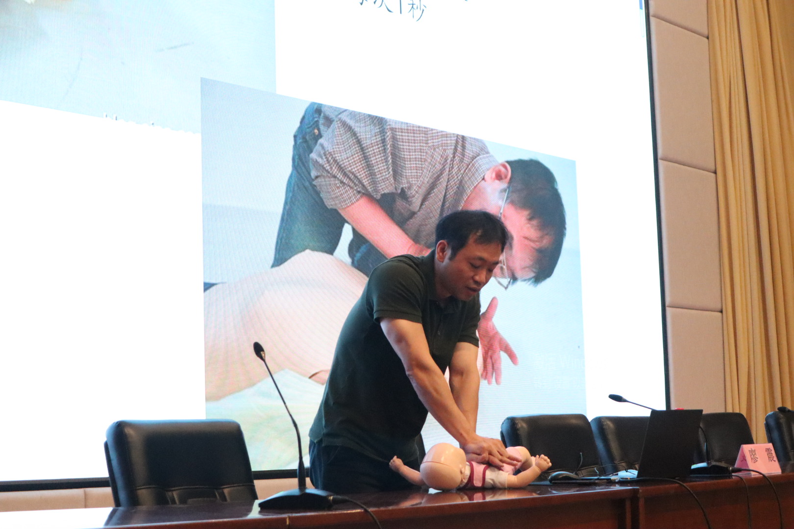 廖震为大家带来急救知识培训,详细讲解并操作了心肺复苏、AED使用法、人工呼吸、海姆立克急救法等。新生纷纷表示受益匪浅。