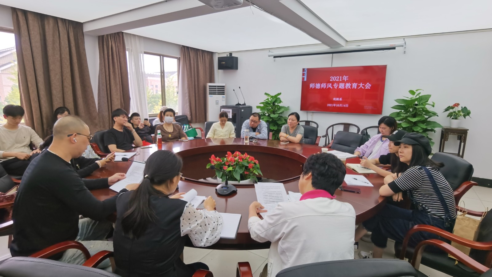 “百年大计,教育为本;教育大计,教师为本;教师大计,师德为本”。根据学校《关于开展师德专题教育活动的实施方案》部署,10月14日,戏剧系在会议室召开2021年度师德师风专题教育大会,全体教师参加。会议由戏剧系党总支专职副书记许瑛主持。