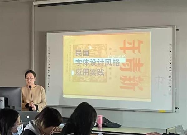盖婧的《字体版式设计》课程,是从历史中汲取营养的字体设计专题,通过案例分析,讲解了五四运动前后和新民主主义革命时期汉字不同阶段的设计风格及形成原因,引导学生在设计实践前养成充分了解时代背景、多方位发掘理论素材的调研习惯,并在此过程中树立正确的价值观。