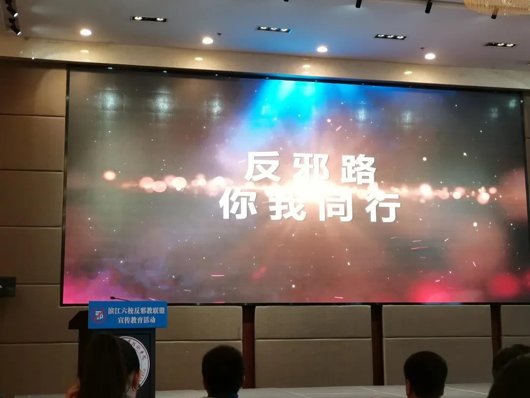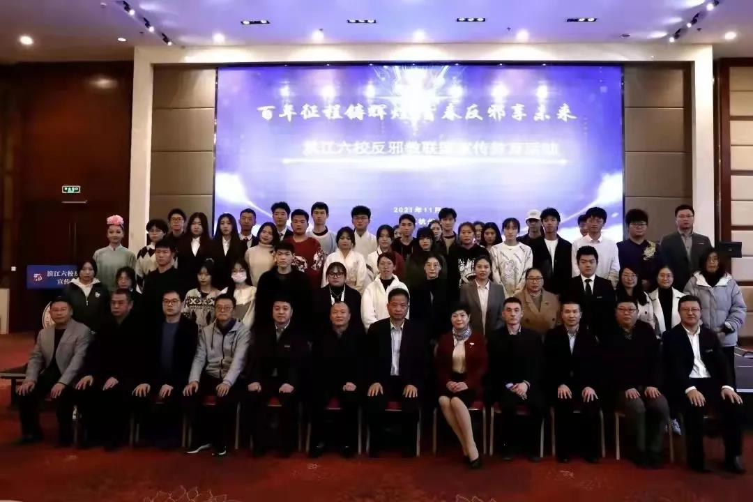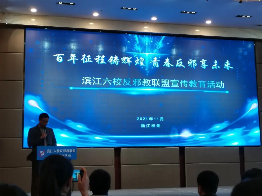 11月18日下午,杭州高新区(滨江)六校反邪教联盟宣传教育活动在浙江商业职业技术学院18号楼会议厅举行。我校戏剧系师生参加了教育活动。