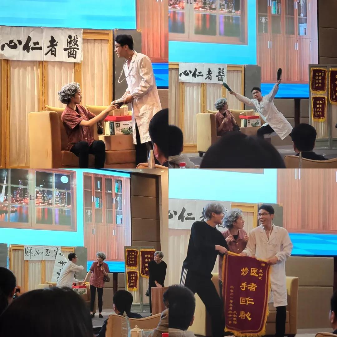 活动分为滨江区科普反邪活动表彰、杭州市反邪教协会理论研究基地揭牌以及滨江六校反邪教联盟成员单位主题教育节目演出三个部分。戏剧系20戏剧影视表演班邱宇敏、施喆磊等4名同学现场表演原创艺术小品《无懈可击》。该小品讲述一位女警变身大妈,假装诈骗受害者潜入诈骗团伙,成功录下了犯罪证据的故事。小品由戏剧系专任教师吉京京指导,以喜剧的形式,演员们充分理解和表现出各角色的性格特征和语言特征,给在场观众带来欢笑的同时,提高了大家防诈骗、防邪教的意识,演出受到观众好评。
