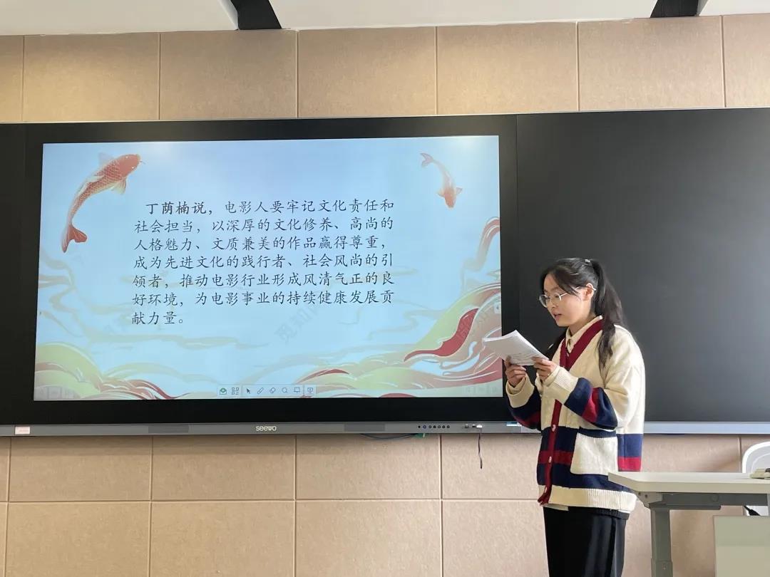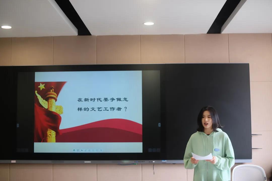赛后,胡卓群对本次党课比赛做点评。她对同学们认真准备给予表扬,同时结合同学们的现场展示,提出了“四个一”建议。一要确定一个点,做到一个明确的点来展开主题党课。二要明确一条线,重点分析案例并深度挖掘案例内涵。三要讲好一个故事,把自己参与文艺工作的故事做到以情动人,以情化人。四要升华一个主题,应如何抓住机遇,迎接挑战,做一名无愧于时代和人民的文艺工作者。