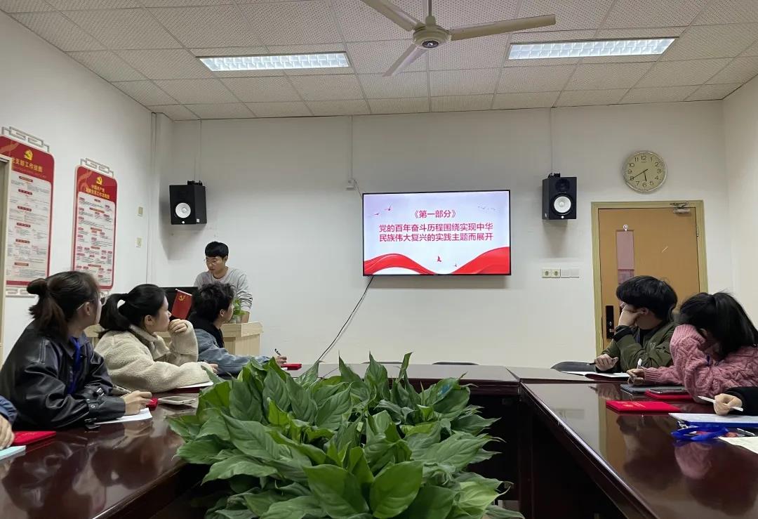 陈宏带领全体学员学习了《中国共产党第十九届中央委员会第六次全体会议公报》,号召全体团学干部从中国共产党的百年奋斗历史中,不断学习经验,为音乐系团总支学生会建设贡献青春力量,为成为有信仰、肯奋斗、敢担当的优秀团学干部而不懈努力。