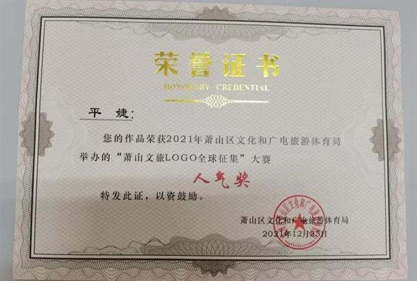 2021年9月萧山区文化和广电旅游体育局启动LOGO全球征集活动,自大赛启动征集以来,主办方收到了来自全国各地的LOGO设计方案,共计300余份。20级广告艺术设计班5位同学顺利进入网络评选,3位同学获得人气奖(二等奖)。