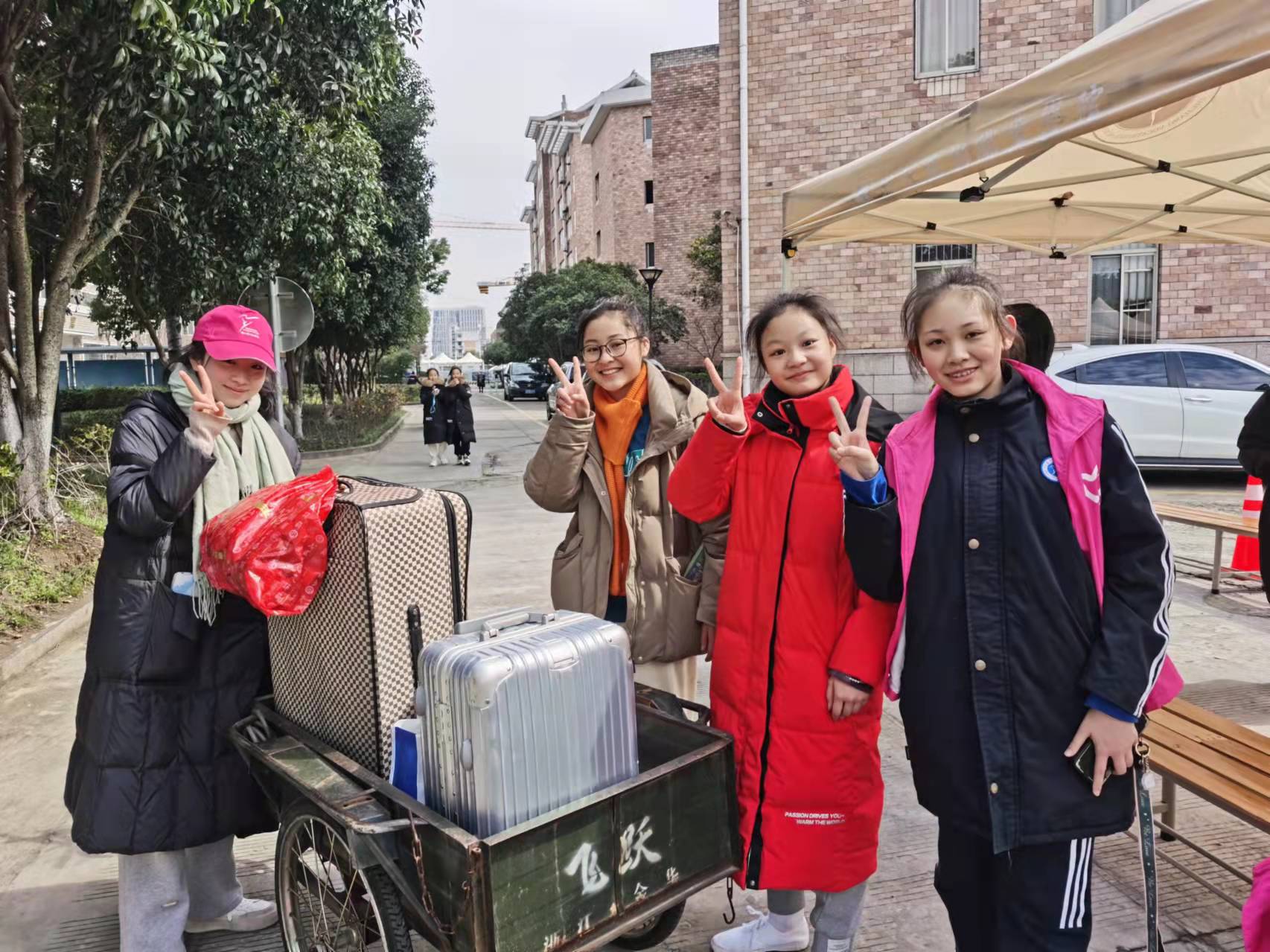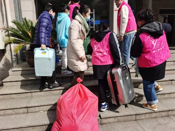 二月杭州的早晨,寒意未减半分。报到当天,戏曲学院副书记、辅导员、班主任们,早校门口、公寓楼前守候等候学子归来。来自戏曲学院各班的志愿者们热情洋溢,笑容满面老师们带领下来回穿梭于校门与宿舍帮助同学们搬运行李、整理内务,让同学们第一时间感受到回家的温暖。